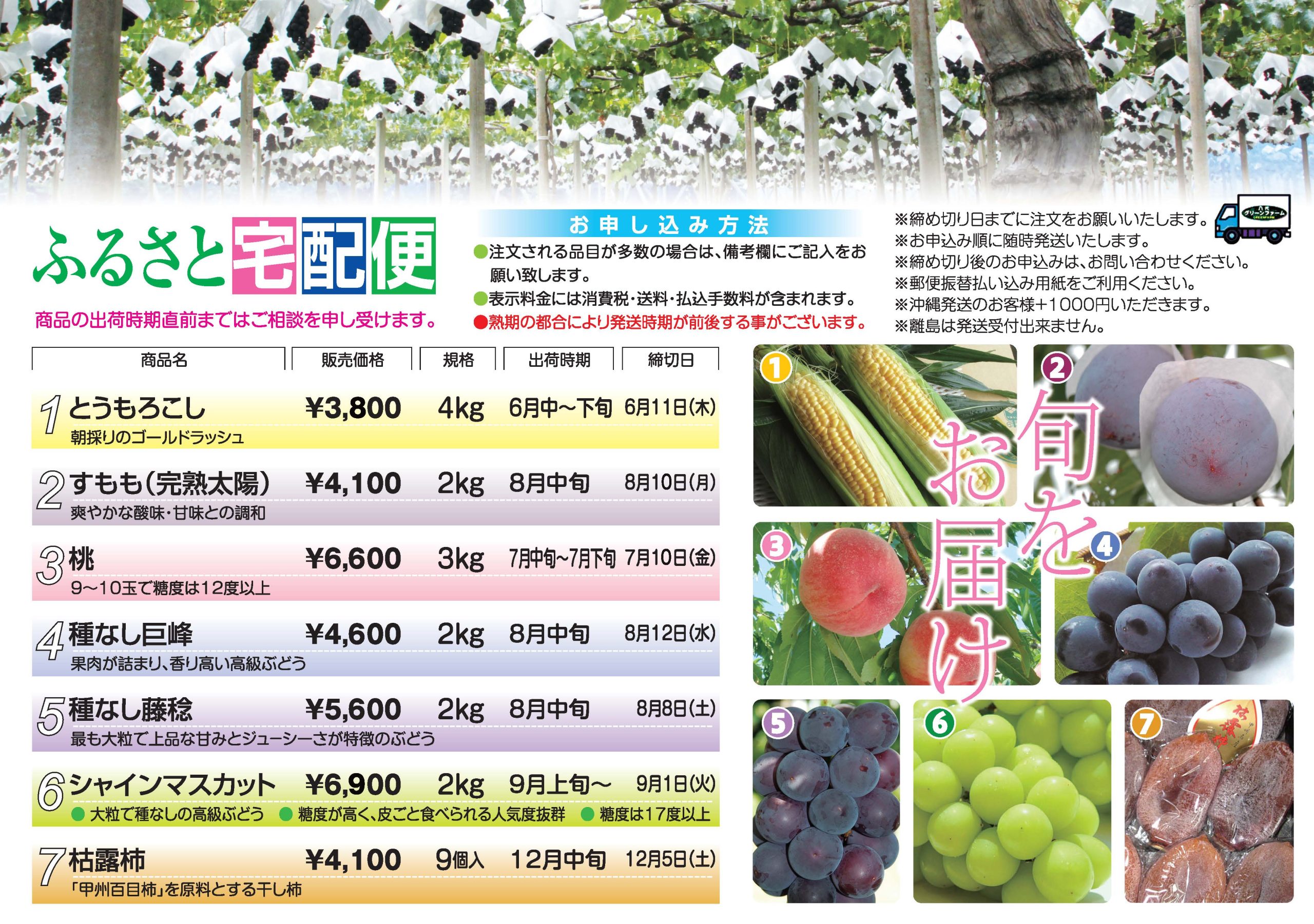 グリーンファーム周辺も桃やぶどうなど新芽が伸び始め活気づいてきました。是非足をお運びいただき、春の野菜や果物を満喫して下さい。